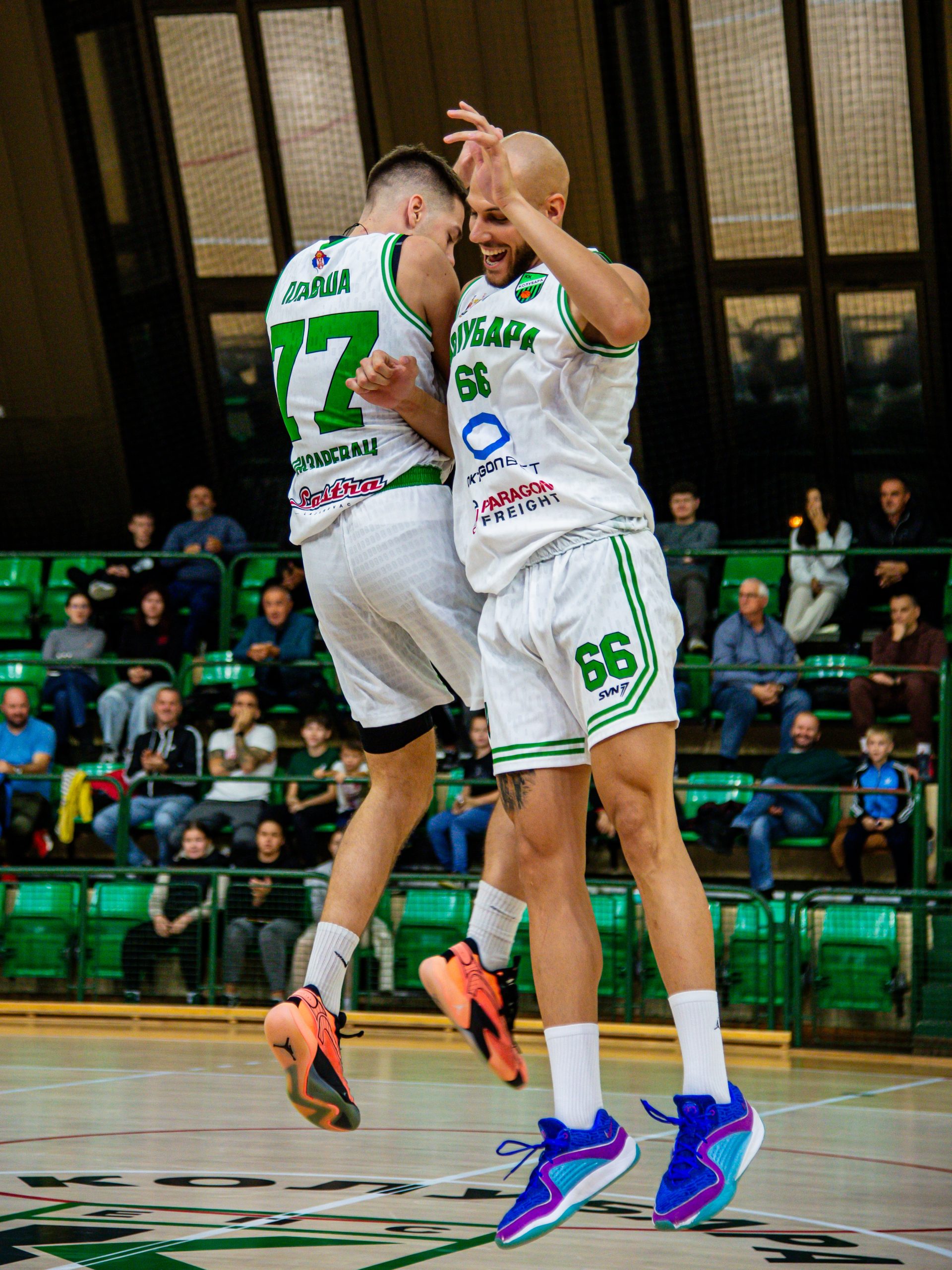 Od starta su naši momci krenuli sa čvrstom i agresivnom odbranom koja je donela prednost od +8, a gosti su na prvi koš čekali skoro pet minuta. Do kraja prvog dela igre „zeleno – crni“ su prednost povećavali i na pauzu odlaze rezultatom 43:29.